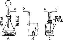 ③若要檢驗二氧化碳氣體,裝置A與裝置C中的導(dǎo)管 連接順序序是a→ ,觀察到裝置C中的現(xiàn)象是 :