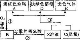 (3)寫出物質(zhì)C與X溶液中某種溶質(zhì)反應(yīng)有 A生成的化學(xué)方程式-------------------