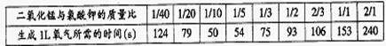 ①據(jù)上表可知二氧化錳與氯酸鉀的質(zhì)量比為 時(shí),反應(yīng)速率最快;