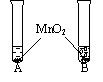 A、B兩個試管中。 ②分別向A、B兩試管 中同時加入等質(zhì)量 (少量)的二氧化錳, 觀察現(xiàn)象。 | A試管中無明顯現(xiàn)象 B試管中有氣泡 產(chǎn)生 | A試管中的無色液 體是 。 B試管中的無色液體是 。 |