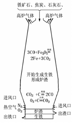 如圖所示是高爐煉鐵時高爐內(nèi)的化學變化過程: