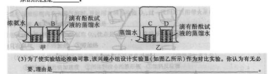 (l)實(shí)驗(yàn)I:在盛有少量蒸餾水的小燒杯中滴入2—3滴酚酞試液,再向其中滴加濃氨水!蓪(shí)驗(yàn)I得出結(jié)論有’——-。