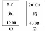 下圖中的①、②是氟元素、鈣元素在元素周期表中的信息,A、B、C、D是四種粒子的結(jié)構(gòu)示意圖。