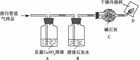 (1)若裝置A中出現(xiàn)黑色渾濁,則說(shuō)明排污管道氣中含有 (填化學(xué)式)。