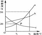 (2)在t2℃時(shí),向三只燒杯中各裝入50g水,分別充分溶解三種物質(zhì)a、b、c,其中溶解最多的物質(zhì)是 。