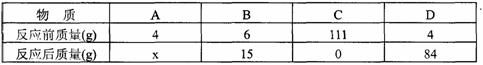 在一密閉容器內(nèi)有A、B、C、D四種物質(zhì),在一定條件下充分反應(yīng),測得反應(yīng)前后各物質(zhì)的質(zhì)量如下: