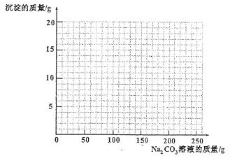 (4)若在100g混合溶液中不斷加入10.6% 的Na2CO3的溶液,請(qǐng)你畫出加入Na2CO3溶液的質(zhì)量與產(chǎn)生沉淀的質(zhì)量的關(guān)系圖。(在答題卡的坐標(biāo)圖中作圖)