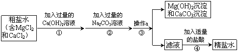 (3)若步驟①和步驟②的順序顛倒,則最后所得的精鹽水中還含有 。