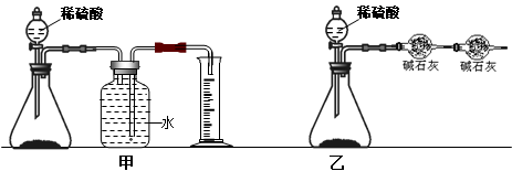 (1)若用圖甲中的收集裝置,則所測(cè)CO2氣體的體積________(填“偏大”、“偏小”、“不變”),理由是 ,你的改進(jìn)措施是 。