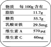 該產(chǎn)品配料中能提供能量的是 , 人體缺鐵會(huì)引起貧血,該奶粉中 物質(zhì)可以補(bǔ)充鐵元素。
