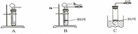 (3)小勤同學(xué)從裝置A得到啟發(fā),在裝置A的基礎(chǔ)上增加了隔離銅網(wǎng)改成裝置B來(lái)制取氫氣,又用一支底部有一個(gè)小洞的試管和礦泉水瓶組合成裝置C(夾持儀器都略去)。則B與A相比優(yōu)點(diǎn)是 (4) ,C與B相比不同之處是 (5) ;而裝置B顯示的化學(xué)反應(yīng)狀態(tài)為 (6) (填“進(jìn)行中”或“已停止”)。