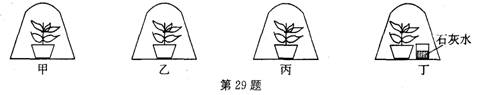 (2)已知石灰水能吸收空氣中的二氧化碳?xì)怏w,把丙、丁兩個(gè)裝置都放在陽(yáng)光下一段時(shí)間,經(jīng)檢測(cè)發(fā)現(xiàn)丙裝置中的綠色植物產(chǎn)生了淀粉,而丁裝置中的綠色植物沒(méi)有產(chǎn)生淀粉。