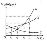 圖中的A、B、C曲線分別是三種物質(zhì)的溶解度曲線。根據(jù)曲線圖回答: