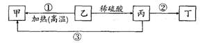 已略去).已知甲為紅色單質(zhì),乙為黑色粉末,丁為白色沉淀,則圖