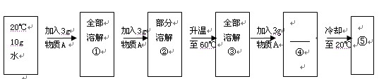 ②狀態(tài)“④”時,物質A 溶解(填“部分”或“全部”)