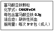(4)已知富馬酸亞鐵(C4H2FeO4)中鐵元素的質(zhì)量分數(shù)為33%,若每次服用1包該補鐵劑,攝入鐵元素的質(zhì)量為 mg。