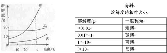 根據(jù)甲、乙、丙三種物質(zhì)在水中的溶解度曲線和資料回答下列問(wèn)題: