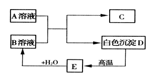 A、B、C、D、E都是初中化學(xué)中的常見(jiàn)物質(zhì),相互之間存在以下轉(zhuǎn)化關(guān)系。其中A是一種鈉鹽,廣泛用于玻璃、造紙、紡織和洗滌劑的生產(chǎn)等;D是廣泛用于建筑業(yè)的大理石的主要成分。(注:A與B生成C和D的反應(yīng)屬于復(fù)分解反應(yīng))