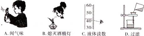 A.檢驗(yàn)自來水中是否含有氯離子 B.用聞氣味的方法鑒別酒精和水