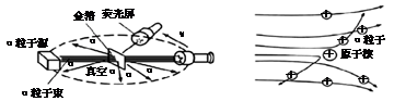 【進行實驗】 1910年英國科學家盧瑟福進行了著名的α粒子轟擊金箔實驗。實驗做法如圖: