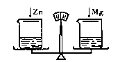 在托盤天平的兩托盤上各放一只燒杯,分別注人足量的稀鹽酸,天平平衡。向左邊燒杯中加入10克金屬鋅,向右邊燒杯中加入10克金屬鎂,當(dāng)反應(yīng)停止后,天平指針的指向是