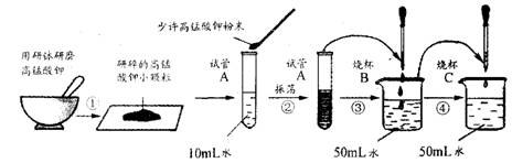 高錳酸鉀是日常生活常用的一種殺菌劑,它是一種紫黑色固體,取少量固體放入