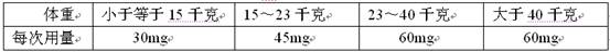 (4)對1歲以上的兒童推薦按照下列“體重一劑量表”服用“達菲”: