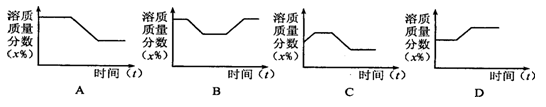 70℃時的m g硝酸鉀的不飽和溶液,在恒溫下蒸發(fā)水分至有較多的晶體析出,然后冷卻至30℃并保持溫度不變。能正確表示此過程中溶質(zhì)質(zhì)量分數(shù)(x%)與時間(t)的關(guān)系的示意圖是