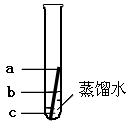 某同學(xué)進(jìn)行了如下圖所示實(shí)驗(yàn)。一周以后發(fā)現(xiàn)鐵釘表面銹蝕。圖中a、b、c三處銹蝕情況最嚴(yán)重的是 (填字母),