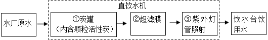 ⑵世博園區(qū)內(nèi)有許多飲水臺,可取水直接飲用。其中的飲用水處理步驟如下圖所示;