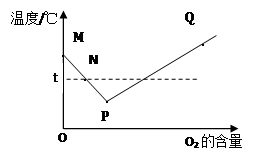 某物質(zhì)的著火點(diǎn)為t℃,圖中該物質(zhì)燃燒得最旺的點(diǎn)是