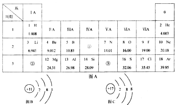 (3)圖B是某元素的原子結(jié)構(gòu)示意圖,該元素在圖A中的位置是(選①或②或③)____;