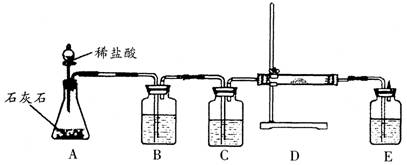 2Na2O2+2H2O==4NaOH+O2↑、2Na2O2+2CO2==2Na2CO3+O2。 某課外興趣小組為了探究過氧化鈉和純凈的二氧化碳反應(yīng)的產(chǎn)物,設(shè)計了如下圖所示的實(shí)驗(yàn)裝置(B、C、D、E中的樣品或試劑分別為飽和碳酸氫鈉溶液、濃硫酸、過氧化鈉、飽和石灰水)。