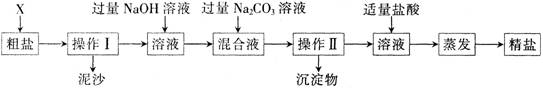 通過海水晾曬可得粗鹽。粗鹽除NaCl外,還含有MgCl2、CaCl2以及泥沙等雜質(zhì)。為了有效將粗鹽提純,實(shí)驗(yàn)的各步操作流程如下圖所示。