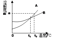D.將t2℃時(shí)B的飽和溶液降溫到t1℃時(shí),溶液變稀了