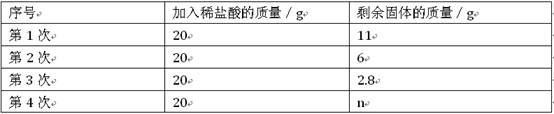 某學(xué)校的學(xué)習(xí)小組對(duì)當(dāng)?shù)氐氖沂V區(qū)進(jìn)行調(diào)查,測(cè)定石灰石中碳酸鈣的質(zhì)量分?jǐn)?shù),采用的方法如下:取該石灰石樣品16g,把80g稀鹽酸分四次加入,測(cè)量過(guò)程所得數(shù)據(jù)見(jiàn)下表(已知石灰石樣品中含有的二氧化硅等雜質(zhì)不溶于水,不與稀鹽酸反應(yīng))。請(qǐng)計(jì)算: