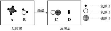 在高溫條件下,A、B兩種物質(zhì)可以發(fā)生化學(xué)反應(yīng)生成C和D。反應(yīng)前后分子種類變化的微觀示意圖如下所示。在這個化學(xué)反應(yīng)中,以下敘述正確的是