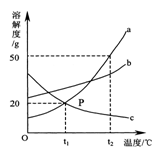 右圖是a、b、c三種物質(zhì)的溶解度曲線,a與c的溶解度曲線相交于P點。據(jù)圖回答: