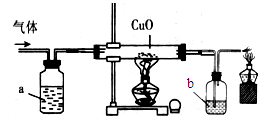 (4)某同學用含有CO2的CO來還原CuO、并檢驗產(chǎn)物是CO2,他設(shè)計了如右圖所示的實驗裝置。請將他設(shè)計的裝置圖補畫完整(畫在下圖中),圖中試劑a是 ;試劑b是 (a、b不能為同種試劑)。裝置末端放一燃燒的酒精燈的作用是 。