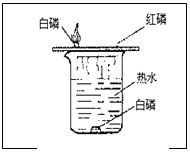 某同學為探究燃燒的條件,做了如右圖所示的實驗。結(jié)果發(fā)現(xiàn)只有銅片上的白磷能燃燒。銅片上的紅磷不能燃燒的原因是__ , 熱水中的白磷也不能燃燒的原因是___ _。
