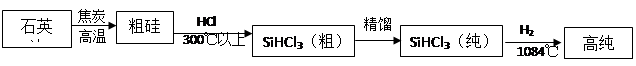 作為推行“低碳經(jīng)濟(jì)”的重要科技進(jìn)步,太陽能 光伏發(fā)電成為2010年上海世博會的“亮點(diǎn)”。太陽能光伏發(fā)電最關(guān)鍵的材料是高純硅。三氯甲硅烷(SiHCl3)還原法是當(dāng)前制備高純硅的主要方法。生產(chǎn)流程示意圖如下: