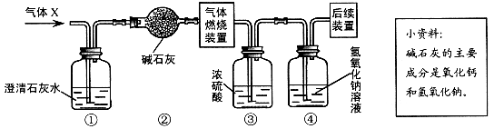 某無色氣體X可能含有氫氣、一氧化碳、二氧化碳和甲烷四種氣體中的一種或兩種。為確認其組成,某同學取一定量該氣體按下圖所示裝置進行實驗(假設每步都充分反應或吸收),結果裝置①中無明顯變化,裝置③增重1.8g,裝置④增重2.2g。