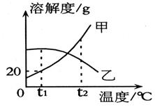 C.溫度小于t1oC時,甲的溶解度小于乙的溶解度