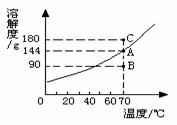 A.70℃時,硝酸鉀的溶解度為114