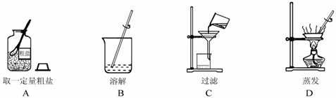 (2)粗鹽中主要雜質(zhì)為不溶物及少量的CaCl2和MgCl2。進(jìn)行粗鹽提純實(shí)驗(yàn)時(shí),要進(jìn)行過濾操作,此操作除需要用到圖中C、D儀器外,還需要圖中沒有的玻璃儀器:___________和玻璃棒。過濾后,濾液中溶質(zhì)除NaCl外,還有少量的________________________。