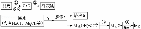 海洋是一個(gè)巨大的資源寶庫(kù),海水中有大量可以利用的化學(xué)資源,例如氯化鎂、氯化鈉、溴化鈉等.下圖為綜合利用海水制備金屬鎂的流程.