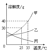 (4)將35℃時丙的飽和溶液降溫到25℃,則其溶液的溶