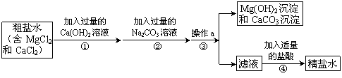 (3)若步驟①和步驟②的順序顛倒,則最后所得的精鹽水中還含有 。