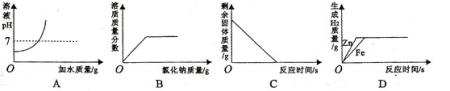 | D.向兩份相同質(zhì)量的、相同溶質(zhì)質(zhì)量分?jǐn)?shù)的稀鹽酸中分別加入過量的鋅和鐵 |