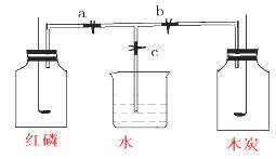 關(guān)閉止水夾a、b、c,使過量的紅磷和木炭分別在盛有空氣的等容積的甲、乙兩瓶中同時(shí)燃燒,如圖所示,試回答: